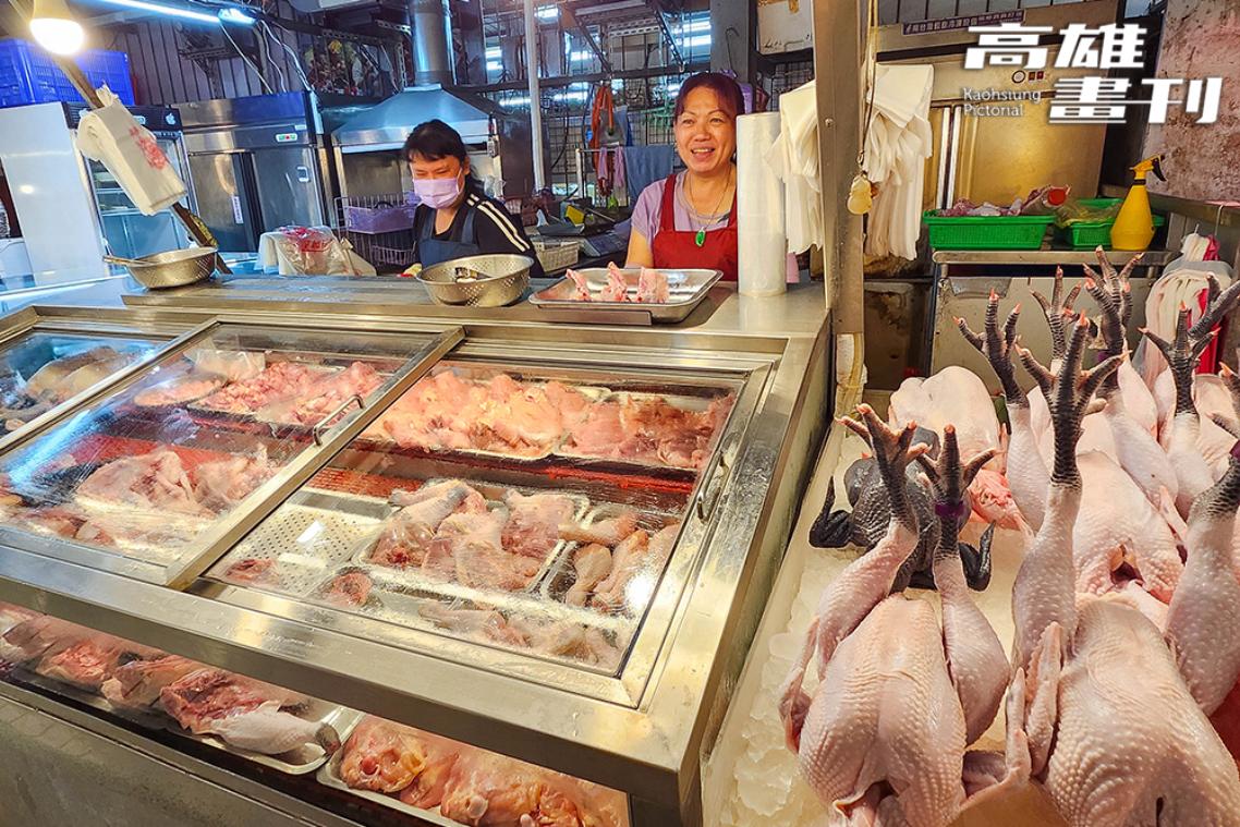 自由黃昏市場占地寬廣,挑高敞亮的空間內,蔬果、肉類、魚蝦等攤位按類別規劃,十分好採買,也減少走逛時的潮濕悶熱感覺。攤位前燈火通明,當季鮮筍、飽滿多汁的水果,還有從海港直送的海鮮和魚類等煥發光澤,新鮮看得見。王巧溱指出自由黃昏市場格外「貴氣」的特色,這裡的雞、豬、牛肉,大多放在冷藏櫃中販售,肉質新鮮度掛保證,同時又有傳統肉攤挑斤論兩,以及客製化切肉服務等優點。