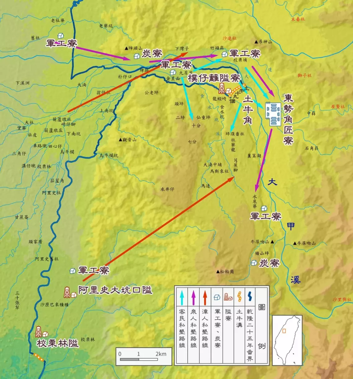 林爽文部眾就是這種情勢下的產物,這股新興的沿山界外私墾勢力逐漸壯大,也埋下日後失控的種子。