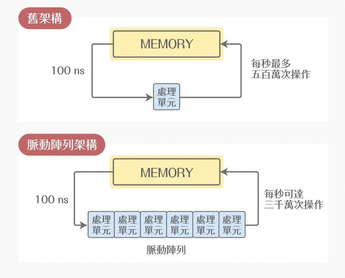 就像心臟收縮的脈動一樣,數據不停地從一個小節點跳到下一個節點,在陣列中不斷地接住、傳出,最後匯集成一個大的運算結果。這種計算方式能夠讓龐大的計算量同時進行,而且每個處理單元都能夠獨立工作,大幅提高了計算效率。