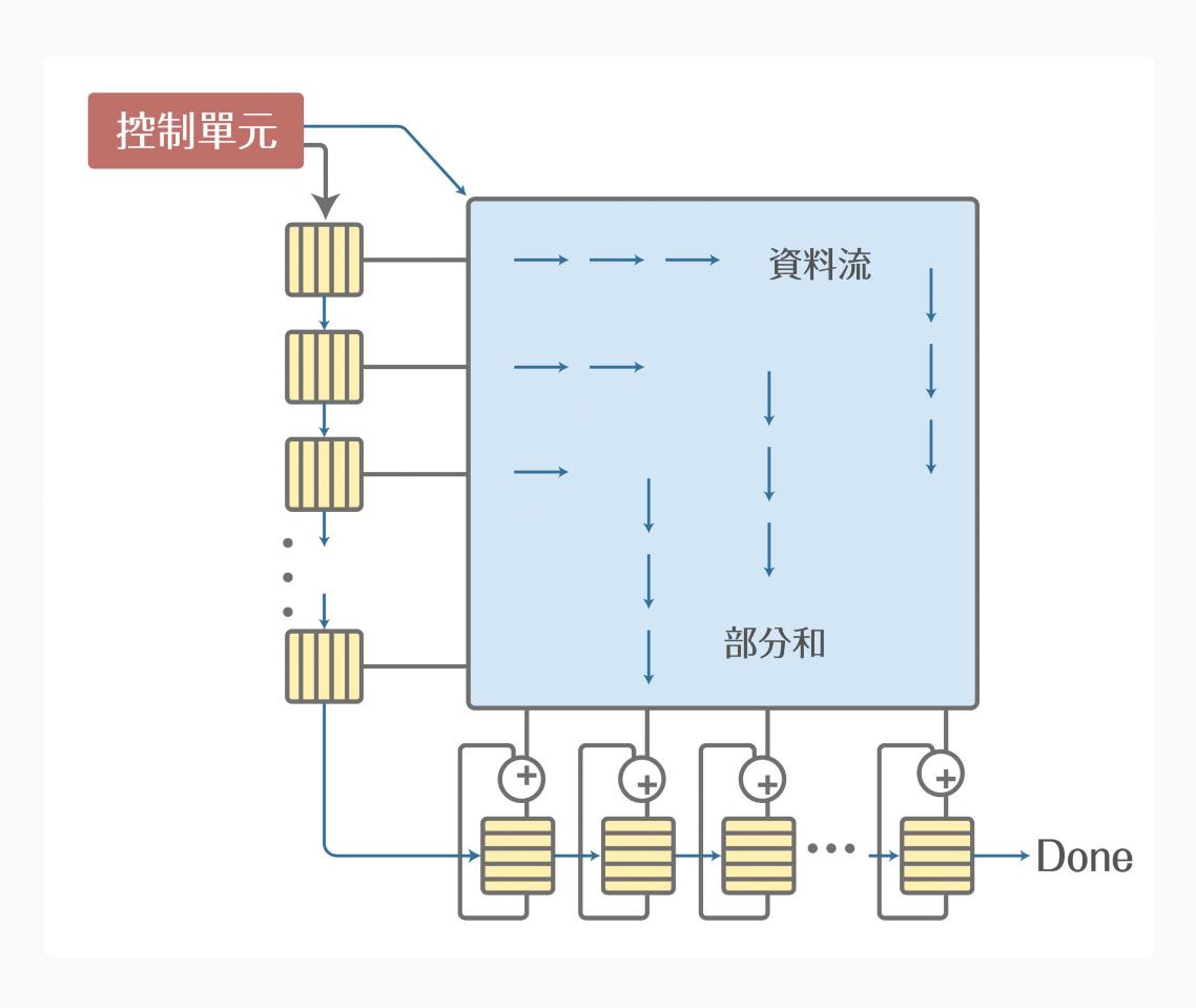 不過要注意的是,脈動陣列適合執行有規則、重複性高的計算任務。雖然 TPU 結構相對要比 CPU 和 GPU 簡單,但是要讓處理單元有效率地協作,仍需要精心設計。