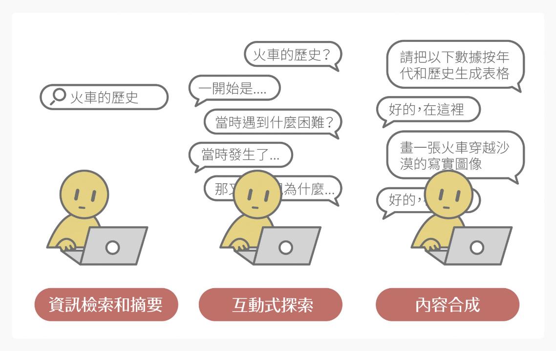 訪談中,孔祥重回憶起在清華大學的一場演講,提到 ChatGPT 對學生的幫助。首先是資訊檢索和摘要,學生可以直接獲得描述性的答案,比搜尋引擎更方便。再來是互動式探索,學生可以透過對話擴充自己資料檢索的能力和相關的關鍵字。第三是內容合成,學生可以快速生成內容來輔助思考。然而,學生在使用 AI 時,需要有軟體工具去找出適合的提示詞來完成複雜任務,避免反覆試錯,浪費大量時間。