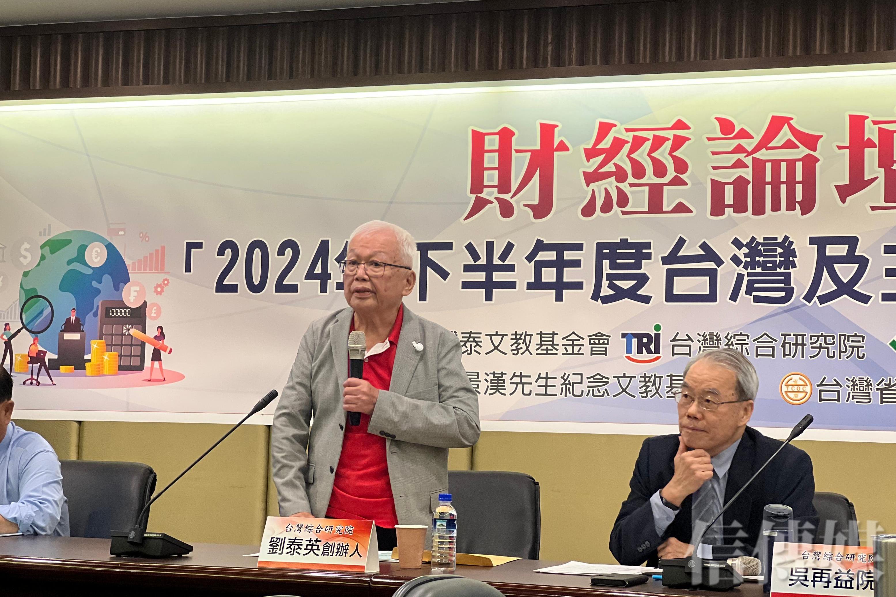 台綜院創辦人劉泰英今(27)日出席「2024年下半年度台灣及主要國家經濟展望」研討會,高齡88歲的他依舊神采奕奕,他受訪時談到,台灣在近一、二十年產業結構快速改變成高科技經濟型態,對於台灣經濟發展有很大的幫助,如今電子產業居於領導地位,搭配AI需求快速發展,他預期,有望再將帶來一、二十年的好光景。