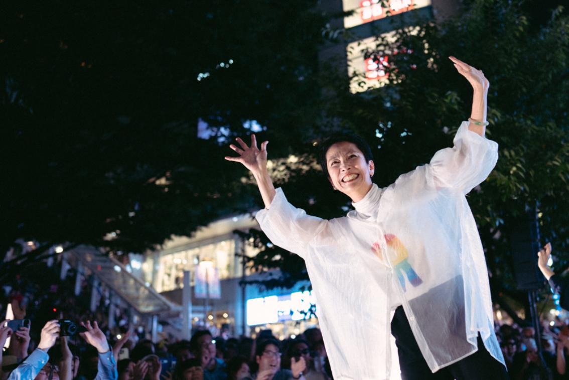 投票日當天的出口民調預測小池百合子將獲勝後,小池出現在她的競選總部,感謝選民選擇她。