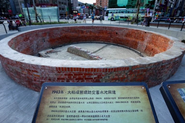 修復前的「大稻埕圓環防空蓄水池」位於地下2公尺處,是目前台北市僅有出土的防空蓄水池,市府決議進行修復與保護,讓古蹟直接展現於市民前,降低古蹟與民眾的距離,且兼具解說及景觀視野功能。.jpg)