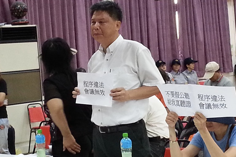 而擔任主席的交通部鐵工局副組長施文雄卻反問:「一定要盡量找到他,沒找到一定不能開公聽會嗎?」