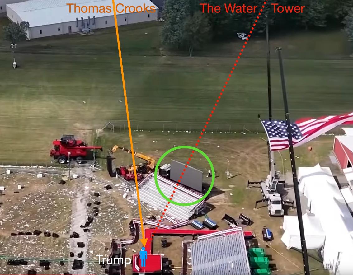 帕里斯認為,當天活動區域內最高的建築不是那座倉庫,而是緊鄰在旁的水塔;他更在會上提出質疑「為什麼沒有反狙擊單位駐守在那裡」。帕里斯進一步表示,巴特勒特警隊的反狙擊手在一小時前,就在倉庫附近發現克魯克斯並判定他為「可疑人物」。