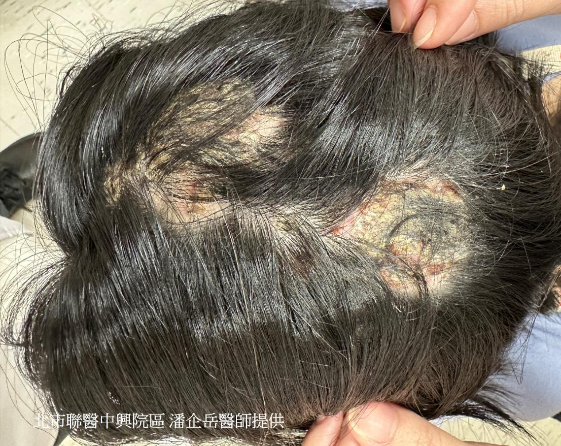 該名8歲女童於診所就醫時,曾使用傳統口服及外用抗黴菌藥,但效果不彰。中興院區皮膚科主任潘企岳先使用Terbinafine口服抗黴菌藥,效果依然不佳,後來改為Itraconazole口服抗黴菌藥治療病情漸有起色,6週後痊癒。69歲女性除了頭癬,因同時有灰指甲及足癬,即以Terbinafine口服抗黴菌藥治療12週,獲得良好成效。