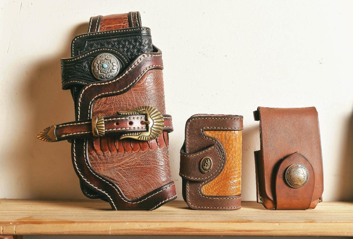黃穆浩回憶,學生時期在皮雕課上意外對皮件產生興趣,課程結束後,他嘗試製作小飾品送給朋友,從大家的回饋與讚美中,他隱約覺得皮革工藝也許是一門商機,還是學生的他,到圖書館翻書自學,一針一線嘗試皮革的多種面貌。