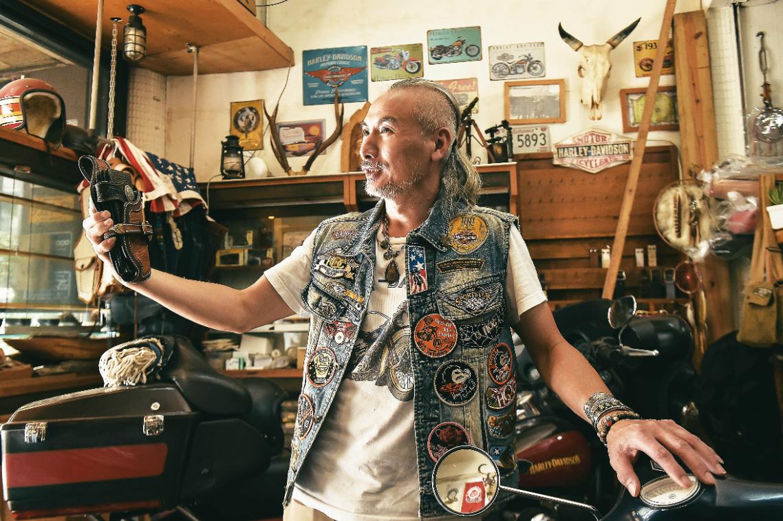 「創造屬於自己的生活態度,一直是我努力的目標。」黃穆浩笑說,在他眼中,時尚未必得花大錢,只要稍加改造,老物新生更具魅力!他以自己的騎士背心為例,將老舊牛仔背心拆線重製,一樣可以成為又酷又環保的當代潮人。這股精神也融入他的品牌理念,例如將不再流通的錢幣,加工後製成皮夾金屬釦飾;又或者將軍用背包結合皮件,再製為充滿美式復古風的產品。