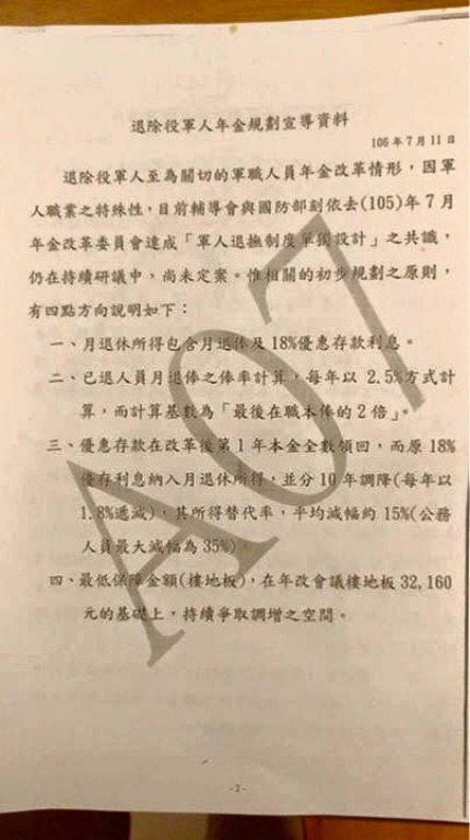 年改會更是發新聞稿重申,針對現役軍人的退撫制度,政府目前正參考美、英、日等先進國家軍人退撫制度,討論研議一套全新的軍人退休俸給制度;至於退除役軍人的退撫制度之相關原則與細節尚在研議規畫中。
