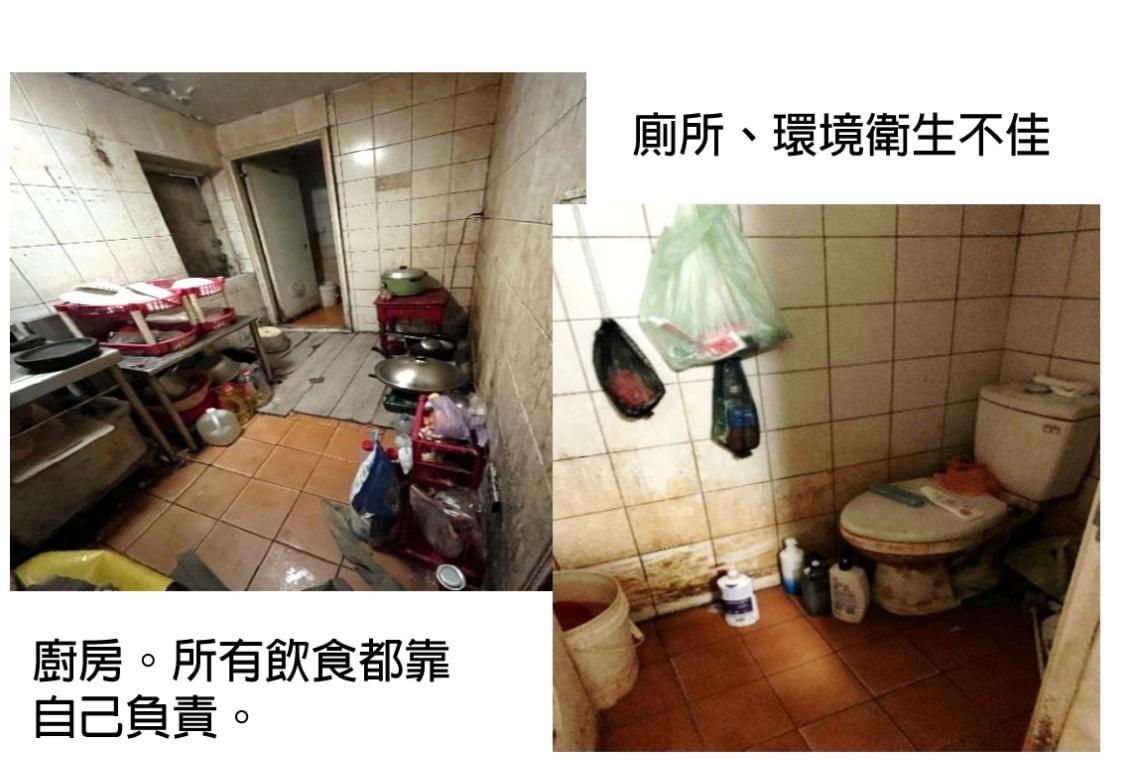 另外,紀惠容指出,外籍漁工的住宿環境極為惡劣,監委實地調查後發現,多達80人要擠在僅有40坪的空間內,已違反每位外籍移工應有居住空間3.6平方米的規定。部分漁工甚至無法擁有基本的生活條件,如床位棉被、熱水和廁所,還需要自行煮食,並負擔每人每天100元住宿費及100元的團體搭伙費。這些問題都嚴重違反外籍勞工的基本權益。
