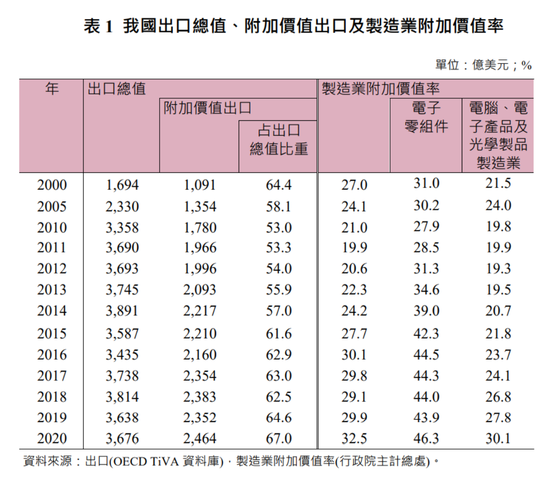出口附加價值含量比率回升至 67%,創21年來最佳