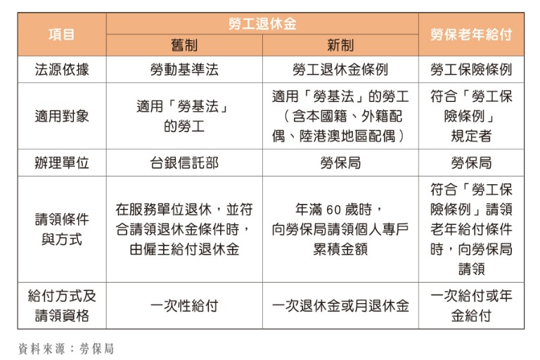 依照目前的勞工退休金制度,退休後的主要收入是來自於勞保年金,以及勞工退休金兩大部分。不過,值得注意的是:首先,勞工退休金其實又有「舊制」與「新制」的區別。