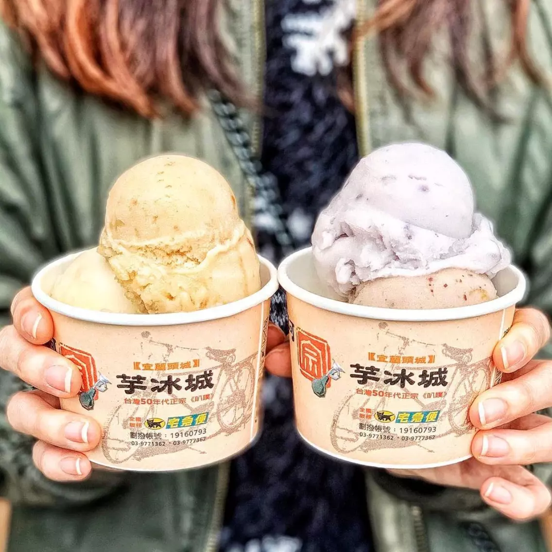 頭城的「阿宗芋冰城」堅持以古早手法製作叭噗,與一般的冰淇淋不一樣,不添加乳製品和添加物,全以食物原料製成,因此吃得到食材本身的顆粒與香氣。除了最受歡迎的芋頭口味,還有紅豆、鳳梨、花生、桂圓、紫米可選擇。一杯可以任選三種口味,每次來頭城烏石港都一定要來吃上一碗!