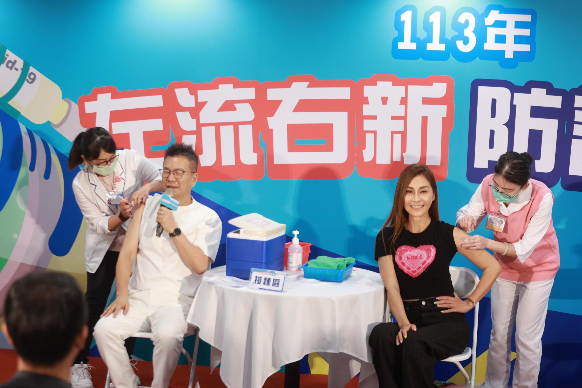 此外,符合第二階段接種資格的藝人沈玉琳先生及梁佑南小姐,受邀到現場接種公費疫苗。沈玉琳先生表示,因為他經常出席活動或演出,接觸大量人群,為了保護自己和家人,每年都會記得接種疫苗;梁佑南小姐因照顧母親經常出入醫護場所,為了保護家人們的健康,每年亦皆會前往合約院所接種疫苗。