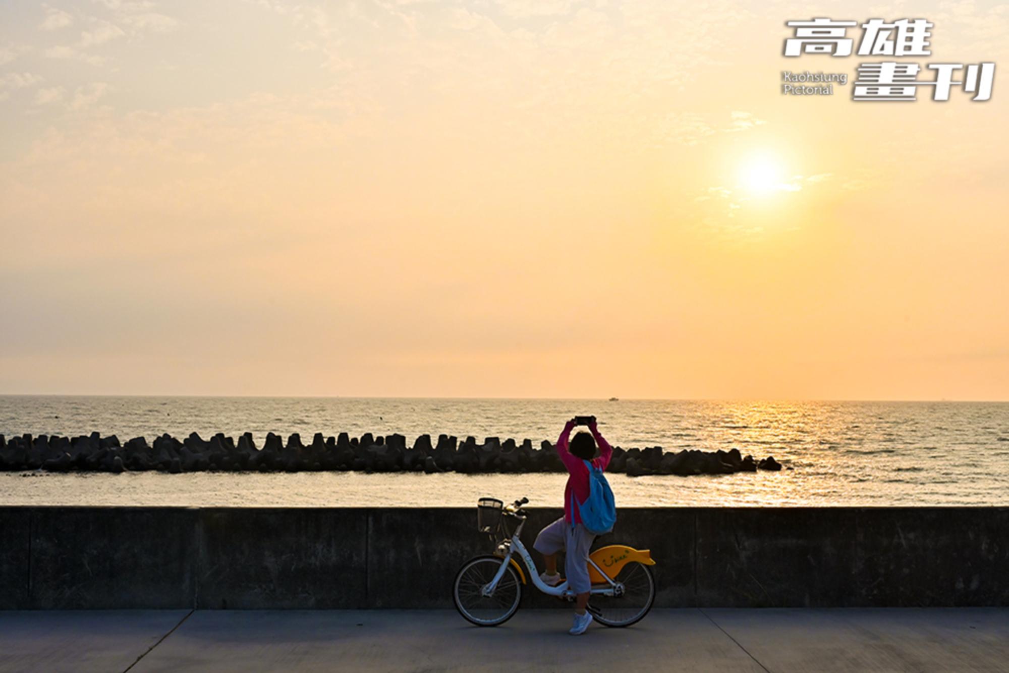 騎著YouBike隨性停下,坐在茄萣海岸公園堤岸上遠眺海的廣闊無垠,黃昏時刻,紅日在雲層間時隱時現,海風鹹味撲面而來,耳邊是浪花拍打堤岸的樂章,在細碎的霞光中,世界彷彿都靜了下來,令人沉醉。