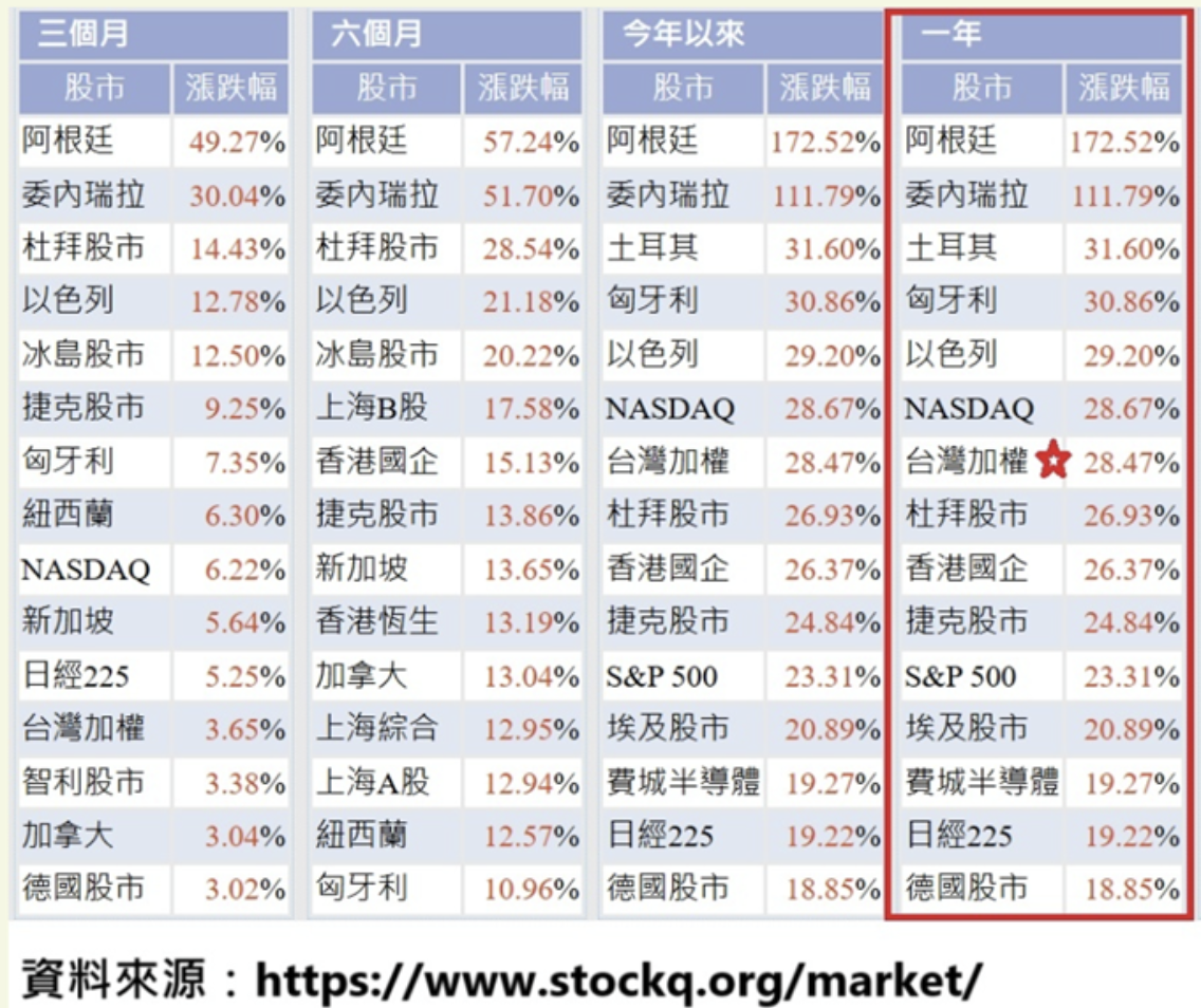 表、2024年全球表現最好的股市漲幅排名(統計日期:12/31/2024)