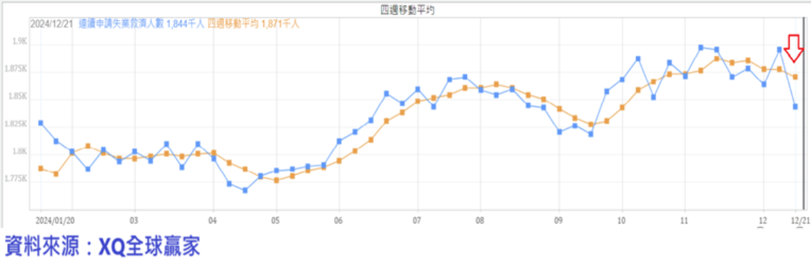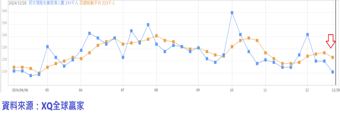 截至12月28日止的美國單周初領失業救濟金人數從前周的22萬人下降至21.1萬人,創2024年4月後的單周最低點。初領失業救濟金四周移動平均數從前周的22.7萬人下降至22.3萬人,結束連續3周上升。