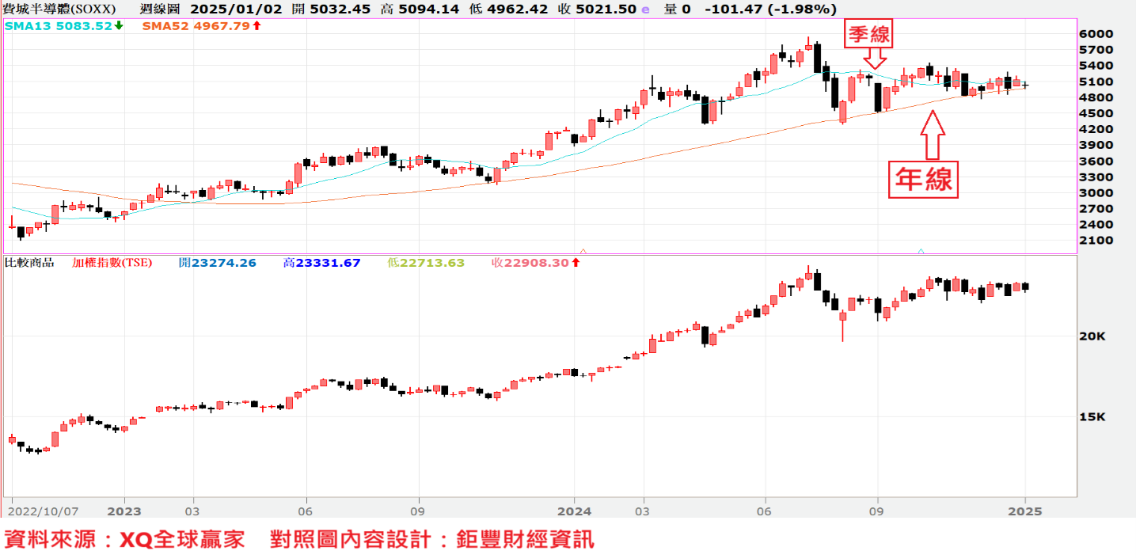 川普政府即將走馬上任,各種新政策對經濟層面造成的影響,相當複雜且難測,美國聯準會(Fed)只能以靜制動,彈性調整貨幣政策步調,預期2025年首季暫時維持利率不變或小幅調整的可能性極高,利率目前仍在長期相對較高位置,對總體經濟的收縮效應仍在,美股歷經2023年、2024年連續兩年上漲,累積的漲幅不小,除非處於高成長階段的產業,否則整體市場存在回檔風險不低,台股與美股費城半導體指數高度相關,謹慎選擇優質且營運高成長投資標的,並彈性調整股權資產與固定收益資產比例,保全已高投資報酬的資產部位。