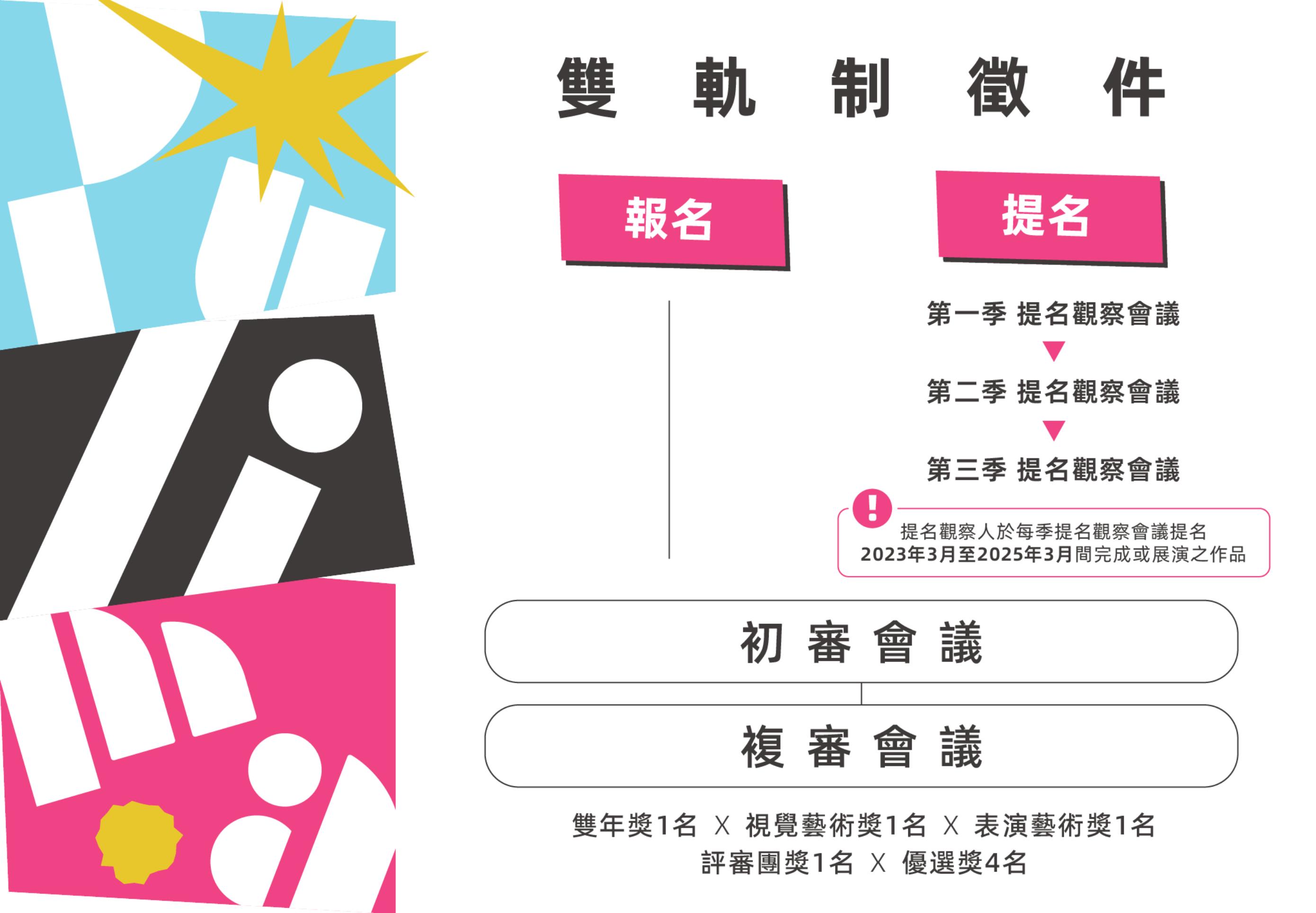 評審作業採初審、複審兩階段進行,最終將選出「雙年獎」、「視覺藝術獎」、「表演藝術獎」、「評審團獎」及3名「優選獎」得主,最高獎金達100萬元,總獎金270萬元。相關報名資訊可至『Pulima Link』(www.pulima.com.tw)查詢,如欲了解更多徵件詳情,可洽詢工作小組(02-27881600 #225 陳小姐,#281 米利安, 週一至週五10:00-18:00)。
