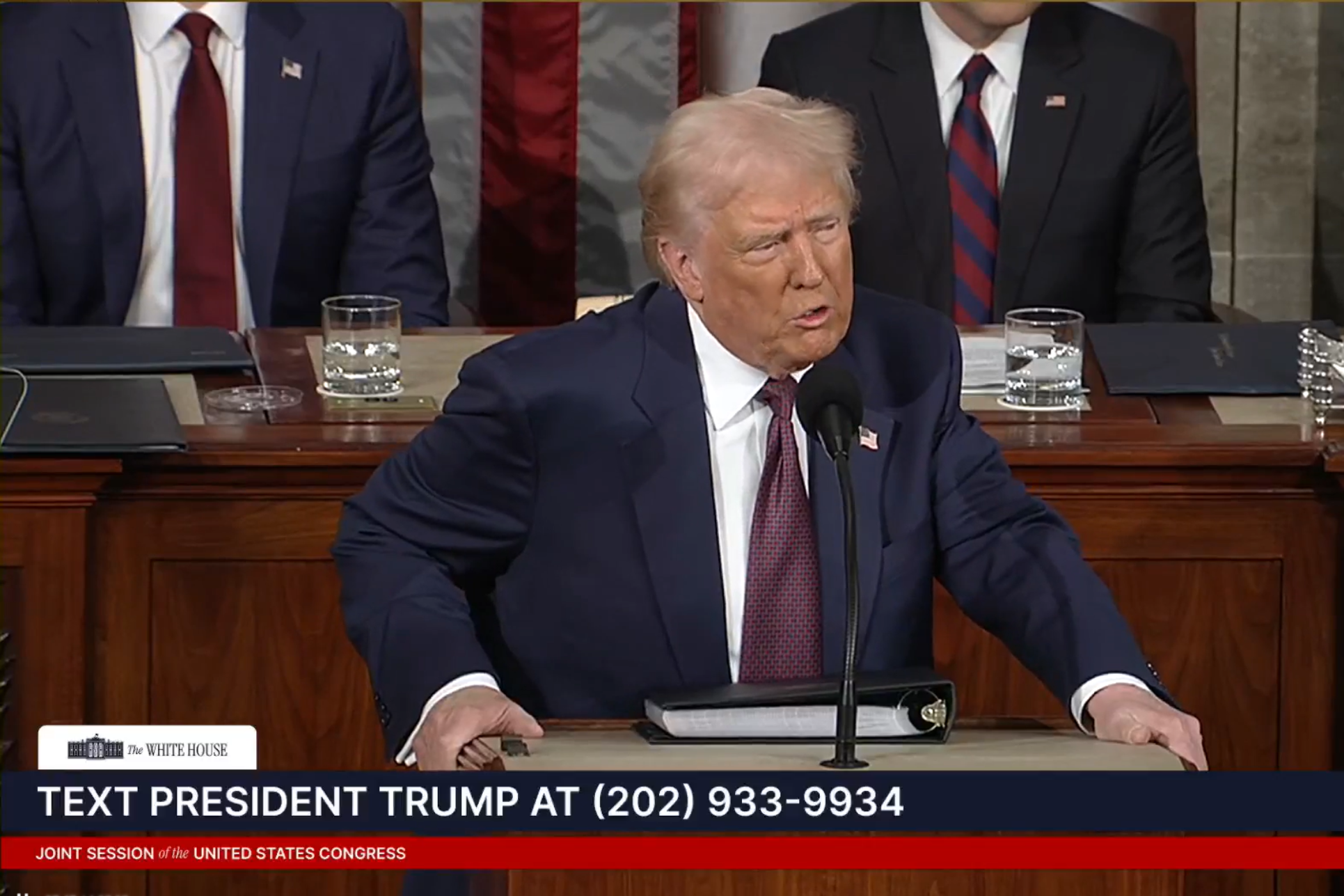 在經濟政策上,川普揚言要平衡聯邦預算,並重申將推出500萬美元的「金卡」計畫,利用富裕移民的資金創造就業機會並減少赤字。他自豪地表示,未提供任何補貼就吸引台積電加碼投資1,000億美元,並批評拜登政府的《晶片法案》是「浪費錢」,應予廢除。他還預告將實施「對等關稅」,以保護美國產業,並稱這一政策已吸引外國企業赴美投資,例如台積電承諾在美打造「地表最強大晶片」的1650億美元投資計畫。