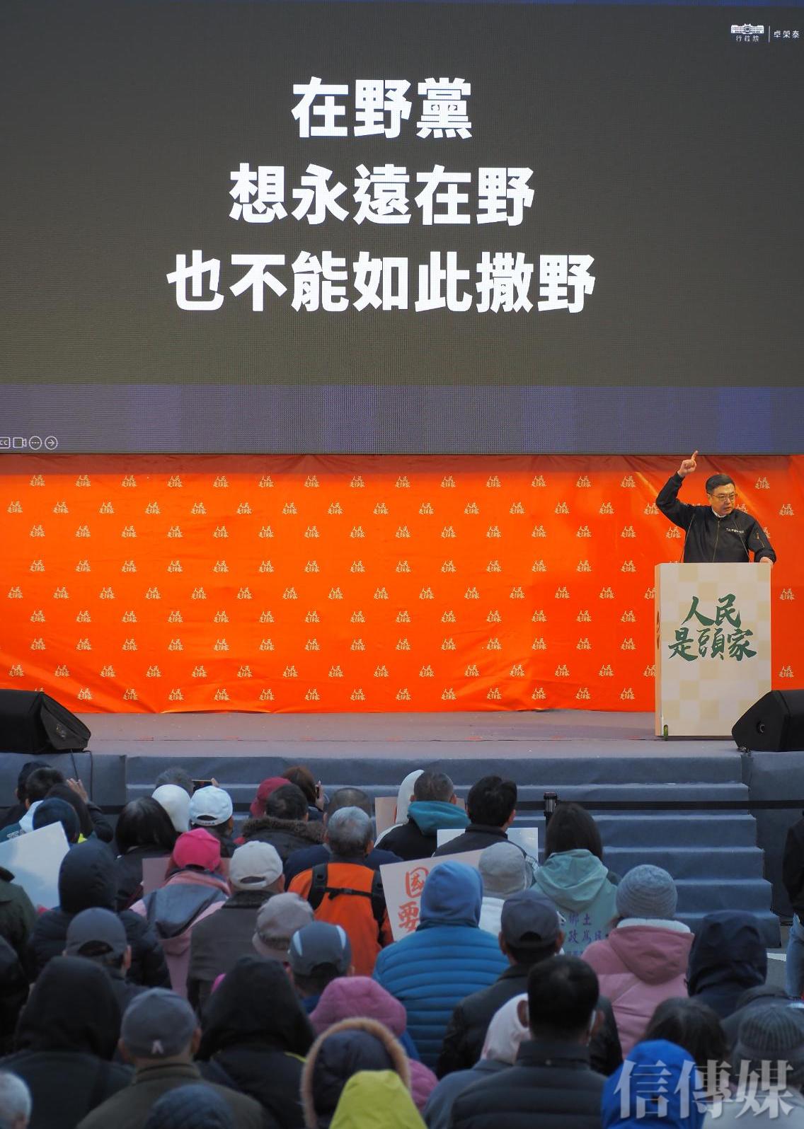 桃園場昨(16)日面臨低溫來襲,但民眾仍熱情不減,塞滿整個活動場地,各地罷免團體也到場設置連署站,一個個大排長龍。卓榮泰激喊:「在野黨想永遠在野,也不能如此撒野」,令全場高聲叫好。
