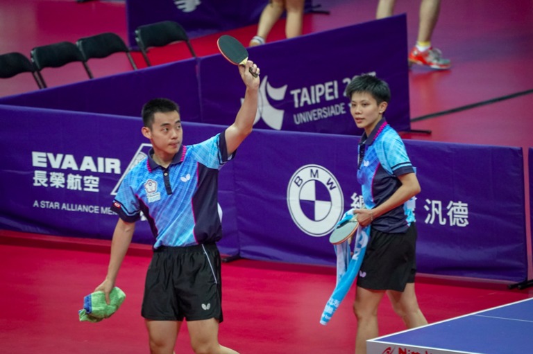 台北世大運桌球混雙於24日開打,第一組陳思羽和廖振珽對上紐西蘭選手,前兩局技壓對手,雖然第三局遭逢頑強抵抗失分,仍在第四局拿下勝利取得晉級。第二組為中華隊奪牌熱門,由鄭怡靜、陳建安聯手對抗拉脫維亞選手,輕鬆直落三對手,贏得勝利。