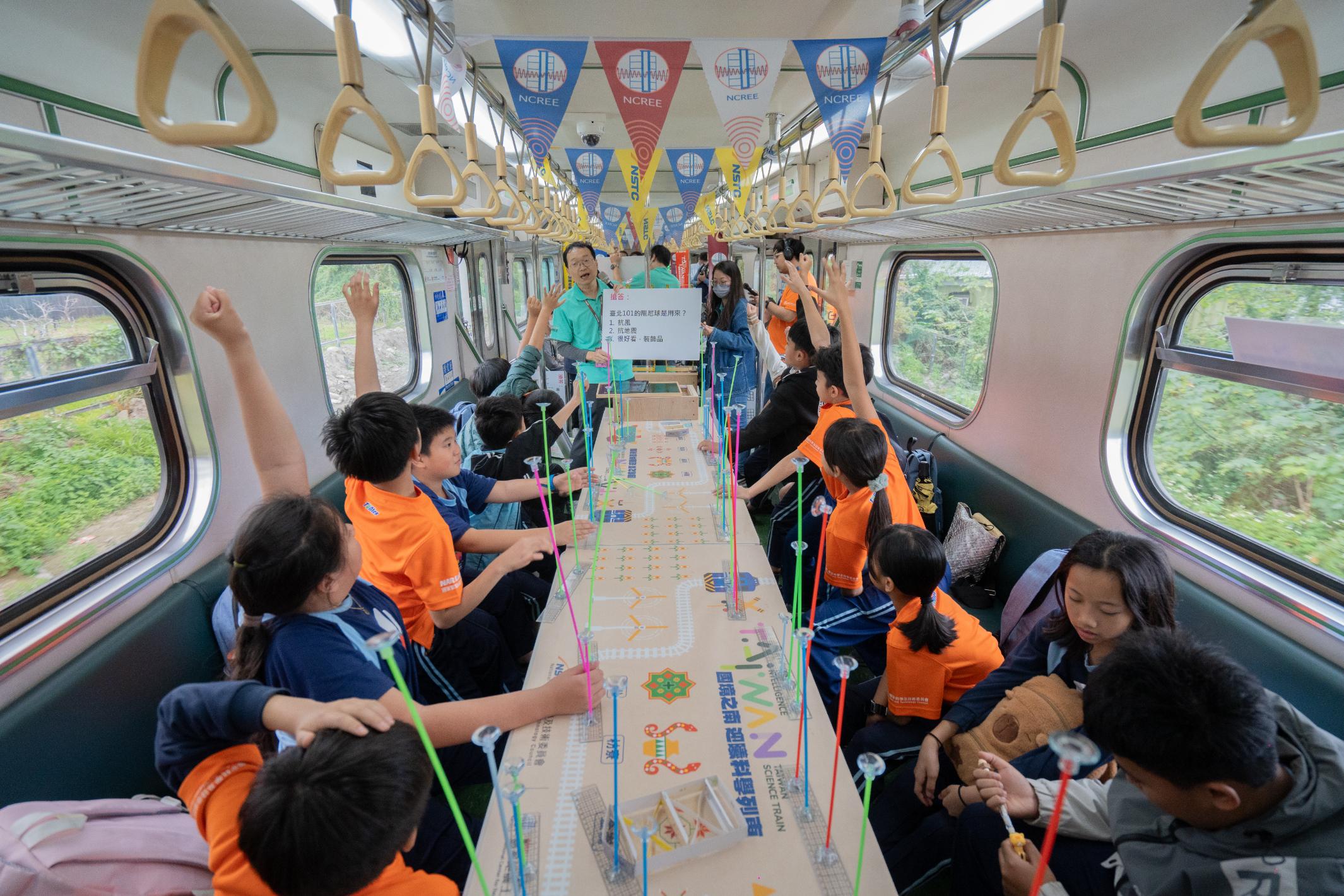 怎麼參與科普列車呢?周中祺副教授解釋,歷年來科普列車在平常上課日舉辦,以學校為單位報名後,由老師帶隊參加。孩子們先抵達車站,參加站點的活動,再搭乘列車體驗車廂內的科普活動,隨著火車駛向下一站的路上參與體驗課程,聽課並動手操作,到達終點後下車,再參加當地的科普活動。
