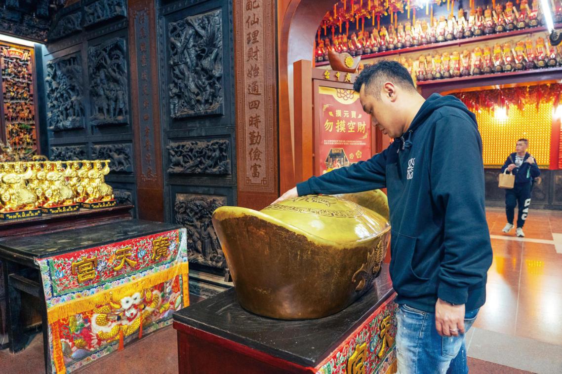 來到廣天宮,除了祭拜財神爺,別忘了摸摸巨大的「財神元寶」,把財氣與好運帶回家,農曆新年時,廟方還會舉辦「過錢門」與「發紅包」與信眾同樂,平時也能填寫借金單,向廣天宮借「168錦囊妙計發財錢母」,取「一路發」寓意,求得招財進寶的好兆頭。
