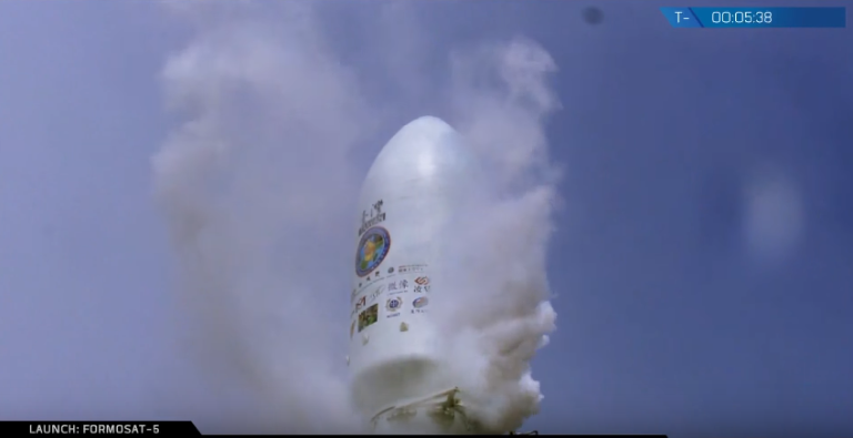 福爾摩沙衛星五號今日(25日)早上9點35分經過台灣,在繞行地球四圈後首度通過台灣上空。這一次,我們在宇宙「看見台灣」。福衛五號在25日凌晨2點50分許在美國的加州范登堡基地升空,終年大霧籠罩的加州范登堡基地也湊巧地在今天為福衛五號放晴。當福衛五號成功脫離發射載具SpaceX獵鷹九號時,深夜的國家太空中心人員無不歡欣鼓舞。