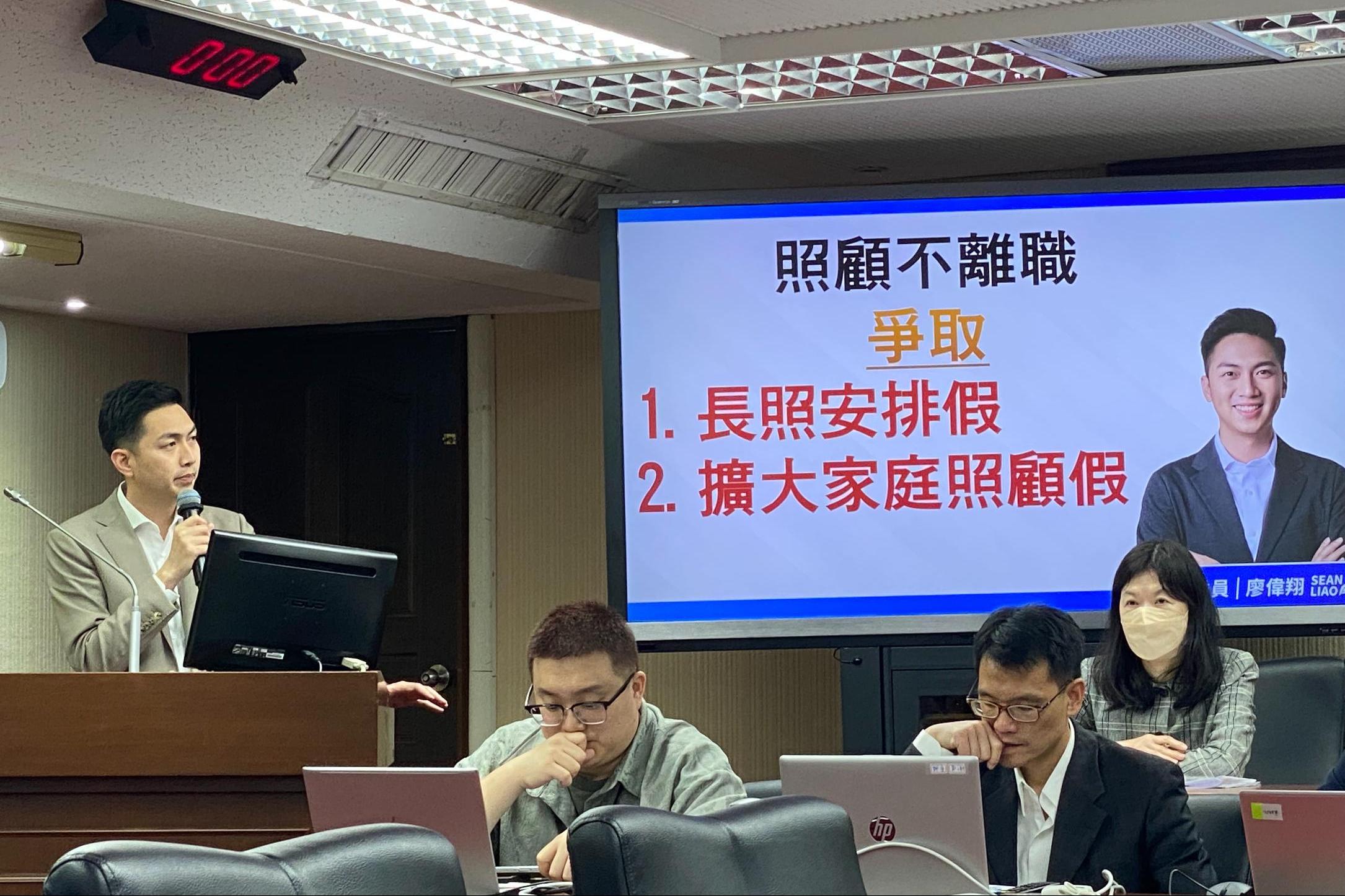 為解決民眾因工作因素導致晚婚、不生等問題,加上今年邁入超高齡社會,年輕及中壯世代面臨幼兒照顧、長照問題兩頭燒。國民黨立法委員廖偉翔表示,勞動部應從「優化育嬰留停」以及「長期照顧安排假入法」或放寬家庭照顧假等方式著手,才能讓年輕人願意生養,解決少子化危機,以及舒緩長照壓力和性別分工等問題。