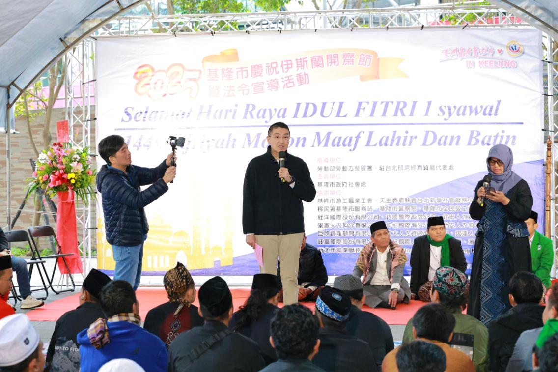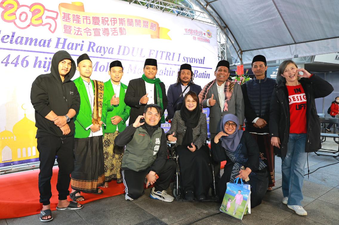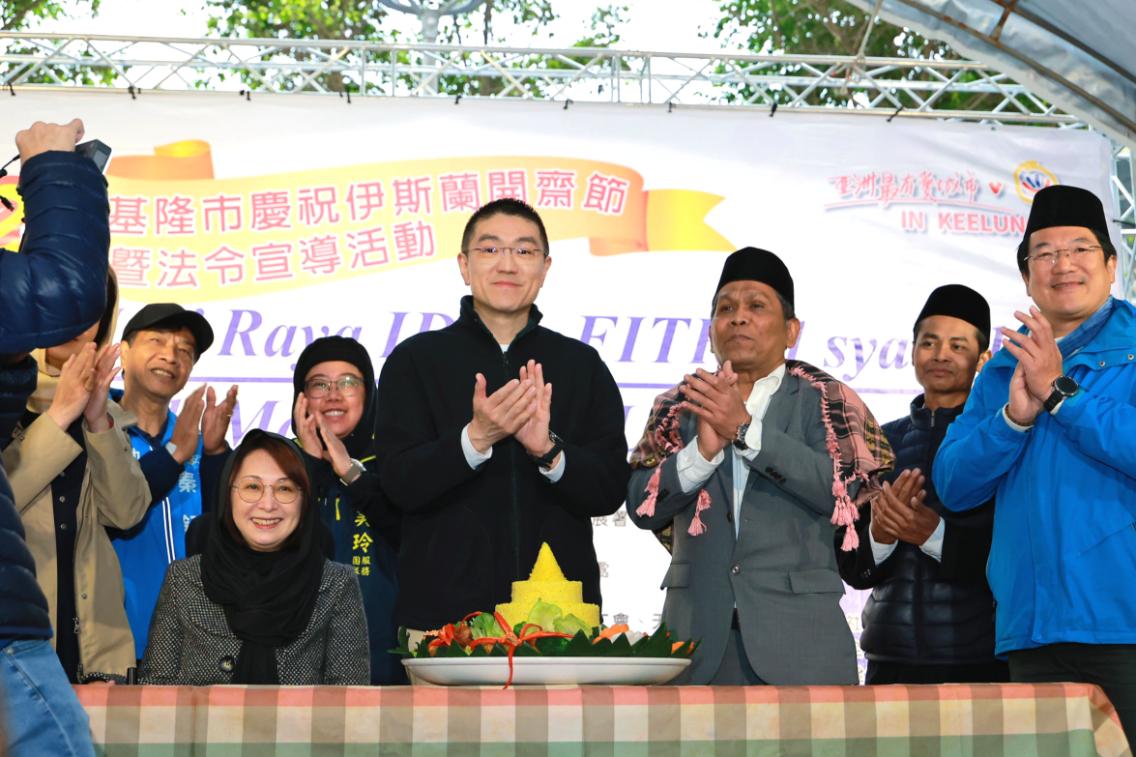 基隆市政府社會處今(31)日上午在城際轉運站廣場舉辦開齋節(Eid al-Fitr)慶祝活動,市長謝國樑率領社會處長楊玉欣、民政處長張淵翔、兒少處長林麗蟬等多名市府團隊成員熱情參與,恭喜大家「齋功圓滿」,並共同感受節日的喜悅,市府團隊將作為新住民的後盾,期許讓基隆成為亞洲最有愛的城市,現場數百名穆斯林朋友共同參與,氣氛既肅穆又歡欣。