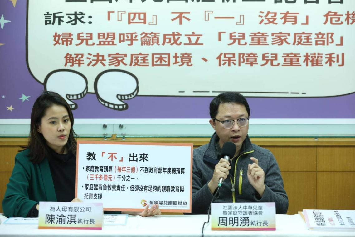中華兒童暨家庭守護者協會理事長執行長周明湧指出,當前法規制度下,教師面對教學、霸凌與危機事件處處掣肘,常面臨無法教、無法管的困境,家庭雖背負教養責任,但卻沒有足夠的親職教育與托育支援,讓家長在教養的培育與實際支持上既無力又無援。「從家庭教育預算(每年3億)不到教育部年度總預算(3千多億元)千分之一,可知政府並未把支持父母教養視為國家責任。」