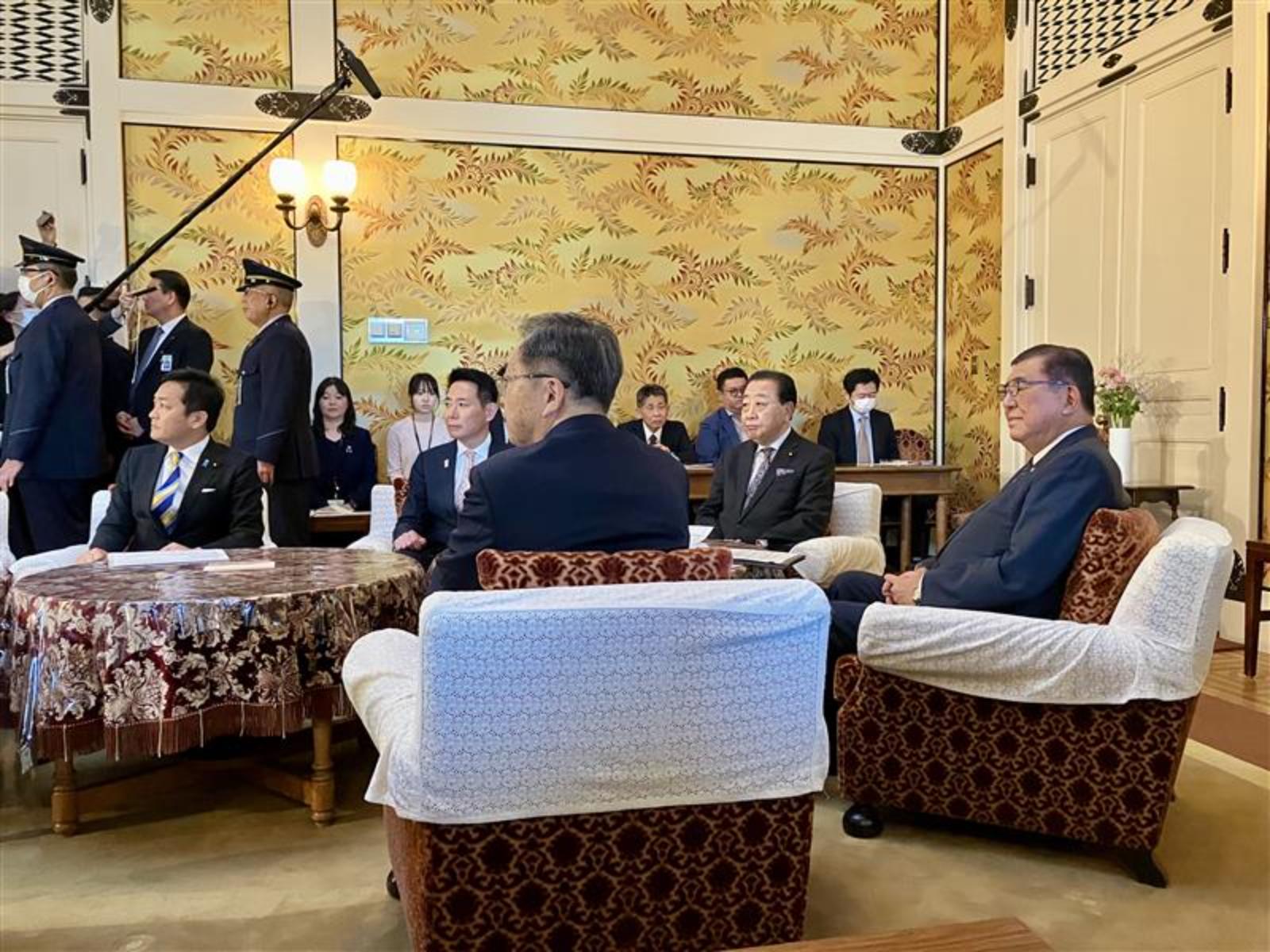 據《朝日新聞》報導,石破茂今日罕見召集在野黨六位黨魁舉行會談,宣布已著手安排與川普直接通話,並將設立閣僚會議加強應對。他將當前局勢定為「國難」,呼籲跨黨派合作。在會中,立憲民主黨代表野田佳彥強調與川普「直接對話」的重要性,國民民主黨領袖玉木雄一郎則主張推動增加實質所得的經濟政策。