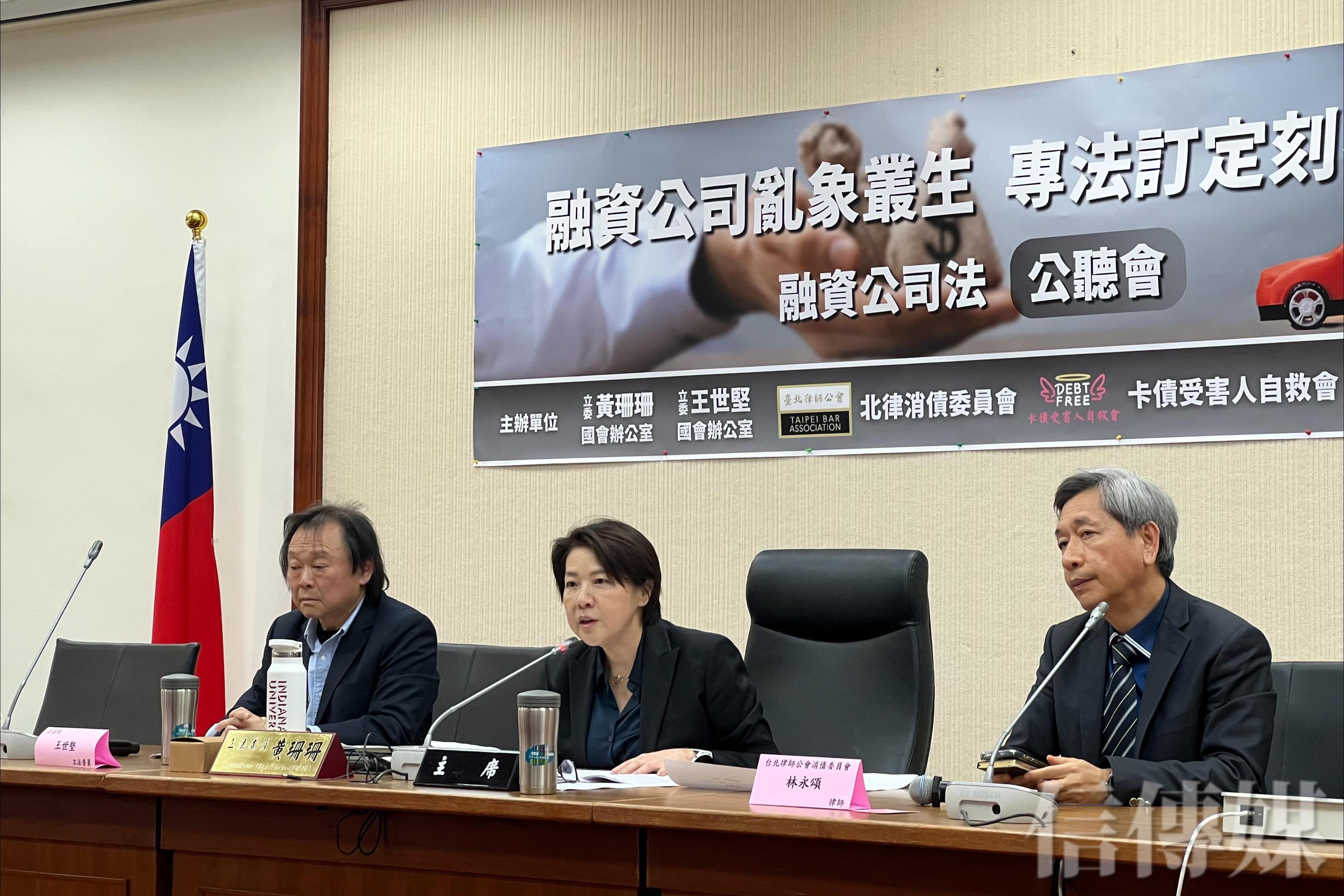 儘管金管會目前已經打算先透過《金融消費者保護法》(簡稱金保法),由三階段逐步將融資租賃公司納入規範,但立委認為力道還不夠,目前包括民眾黨團、民進黨立委王世堅等人已提出融資公司專法草案版本,並在8日與民間團體北律消債委員會、卡債受害人自救會、台灣社會福利總盟等單位舉行公聽會,廣邀專家學者、公會、協會、業者代表及業界人士針對專法內容進行討論。