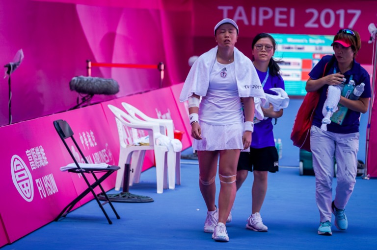 世大運網球進入最後一天賽程,今日上午女單決賽登場,中華隊第4種子李亞軒帶傷出戰泰國選手Wongteanchai Varatchaya,兩人在烈日下激鬥三個多小時,第一盤即進入延長賽。比賽中李亞軒的身體多次出現不適,仍靠意志力苦撐,最終以2比1落敗屈居銀牌。