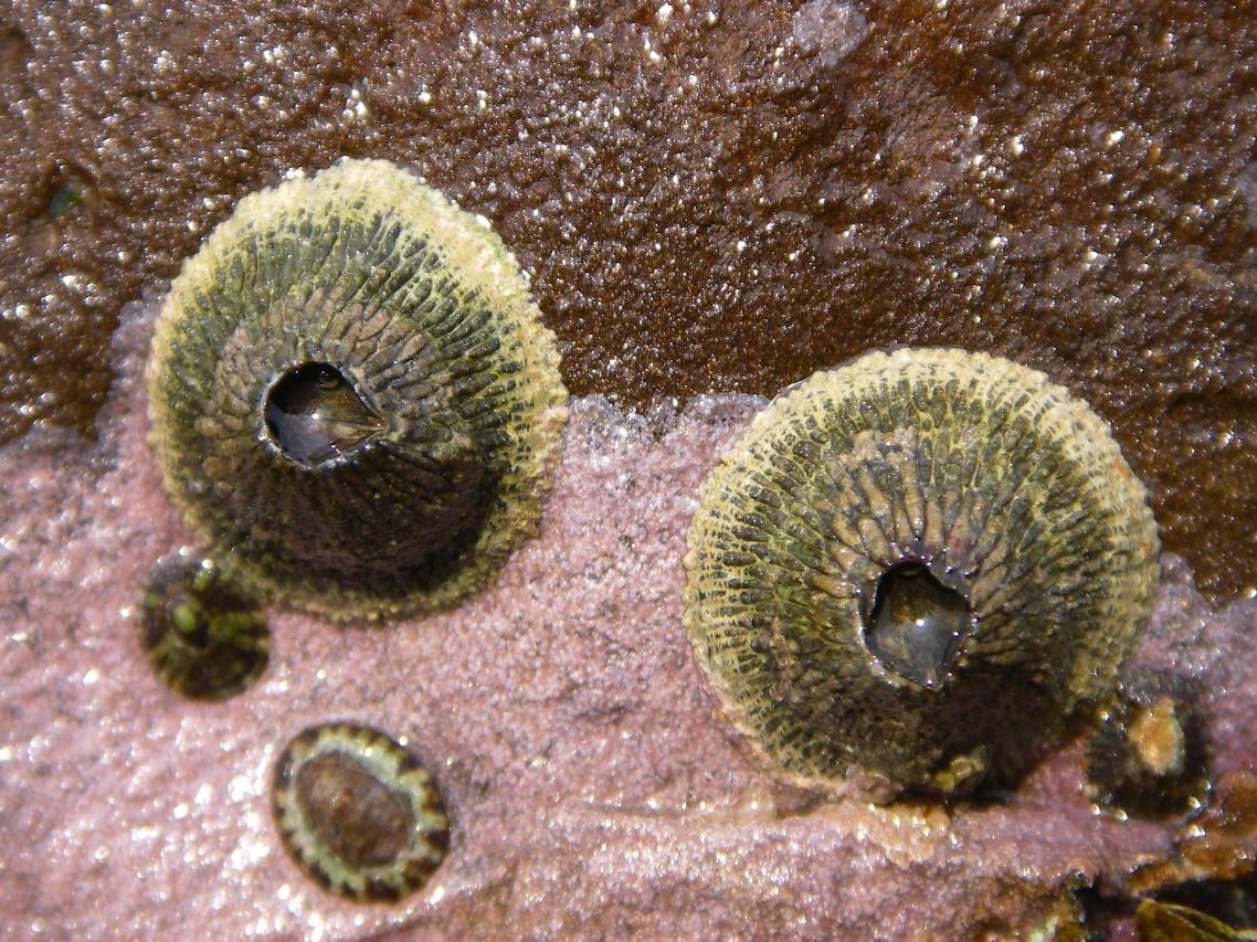 當你漫步在臺灣的岩岸潮間帶,很容易就能看到許多像斗笠、火山形狀的生物,牠們的頂端有個圓形開孔,並且緊緊附著在礁石上。這些是藤壺中的「無柄藤壺」類型,顧名思義,牠們沒有柄狀部位連結岩石,而是直接黏在礁石上居住,外面再加上一個堅硬的碳酸鈣外殼,保護自己柔軟的軀體。臺灣的東北角、東海岸及墾丁海邊,常見有外殼為綠色的黑潮笠藤壺,這是 2007 年時,陳國勤在臺灣發現及命名的新種。