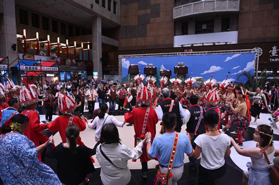 現場並有百人共舞將氣氛推向高潮,正式為七月即將登場的千人共舞預熱。現場設有來自花蓮的20組原鄉市集,以部落旅遊、工藝與飲食等,讓文化走入日常,與民眾親密互動。
