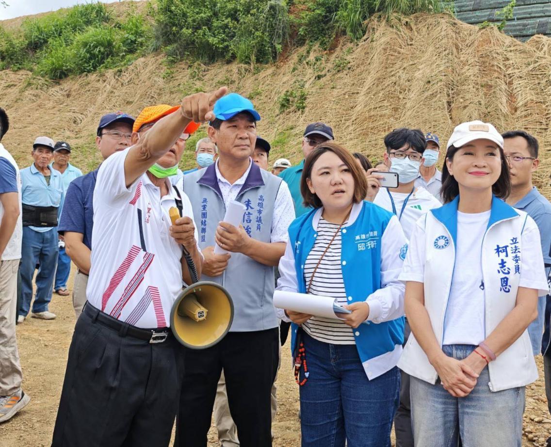 16日下午,立委柯志恩親赴案場會勘,從空拍畫面看到大片黑色光電板鋪滿山頭,距民宅僅百公尺。她批評開發「失控」,並痛斥現場工程潦草,滯洪池堆滿土石、邊坡工程草率,水土保持失能。市議員與多位居民亦到場抗議,直言擔心颱風引發土石流滅村。
