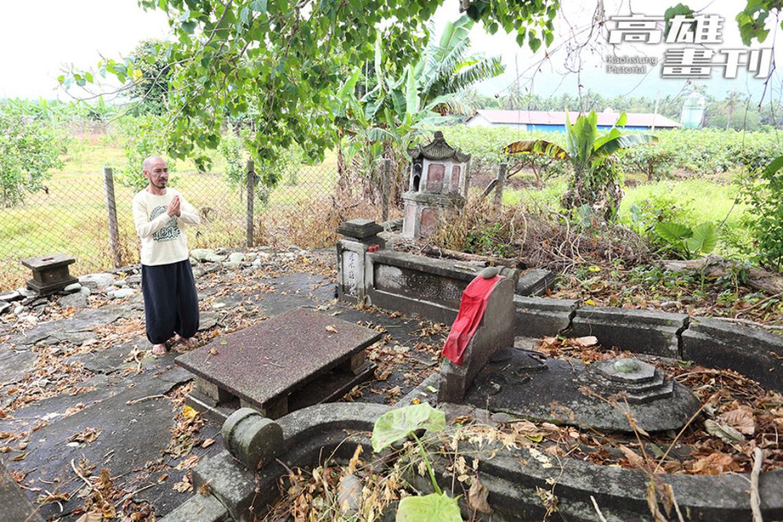 在緊鄰福安庄的埔羌林地區,鄧富雄帶我們探訪了一座超過百年歷史的田頭伯公。這座化胎式伯公壇位於私人果園之中,宛如時光靜止般遺世獨立、靜謐祥和,默默守護一方土地的豐收與安寧。