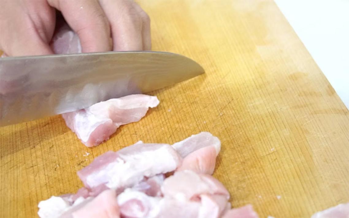 蒜苗斜切成段,蒜白與蒜青稍微分開,以利後續不同步下鍋。