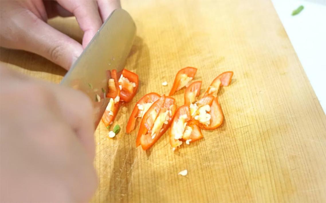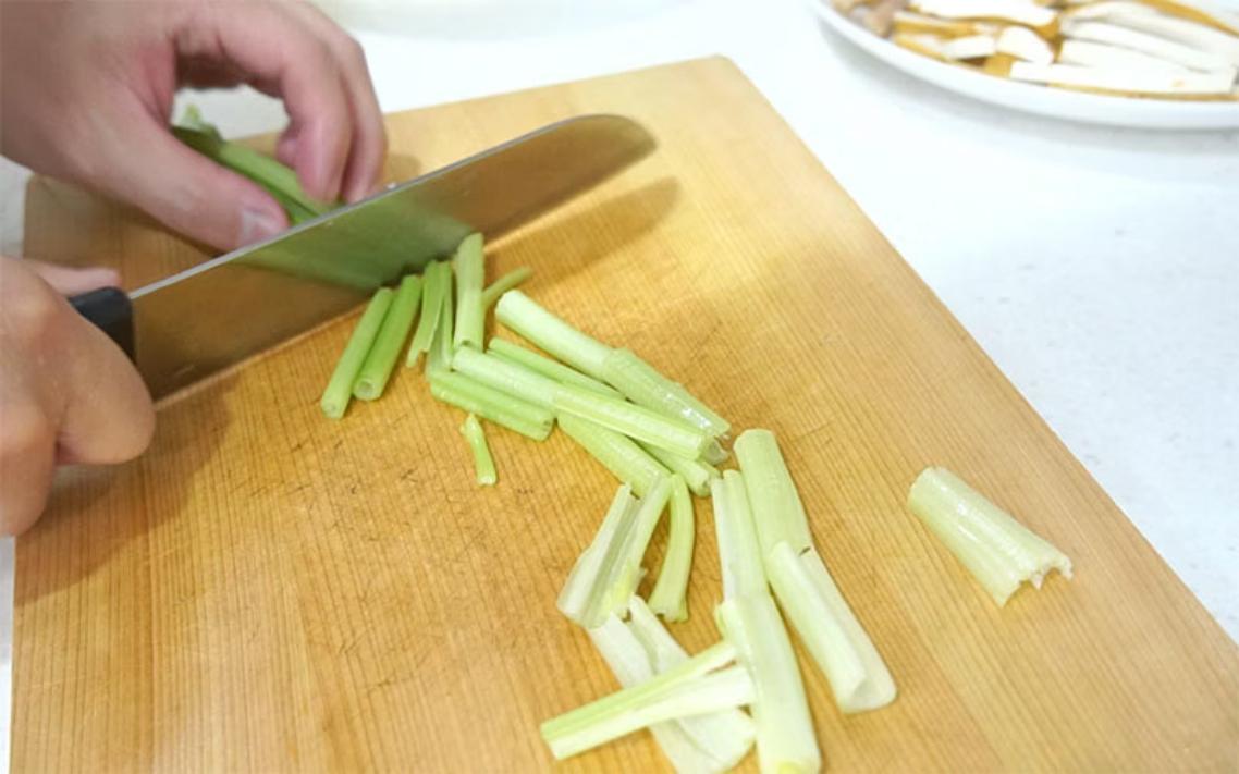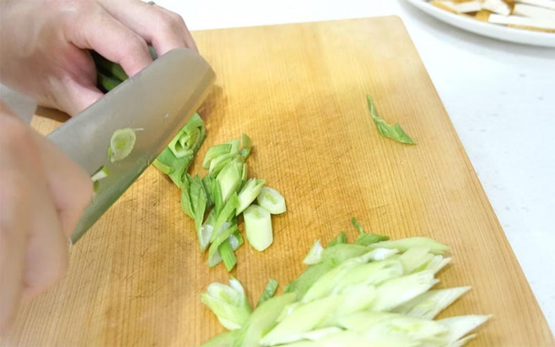 蒜苗的蒜白部分可用刀身拍裂再切,有助釋放風味。