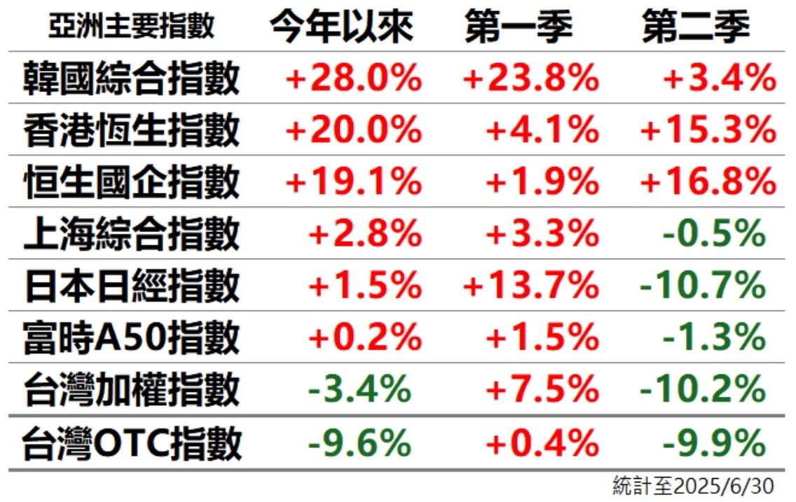 因為美國總統川普4月起對全球發起關稅戰,衝擊依賴對美出口的台灣經濟,促使台股加權指數上半年下跌3.4%,上櫃指數下挫9.6%,馬來西亞跌6.5%,泰國股市大跌22%,台股上半年表現列入亞股末段班。