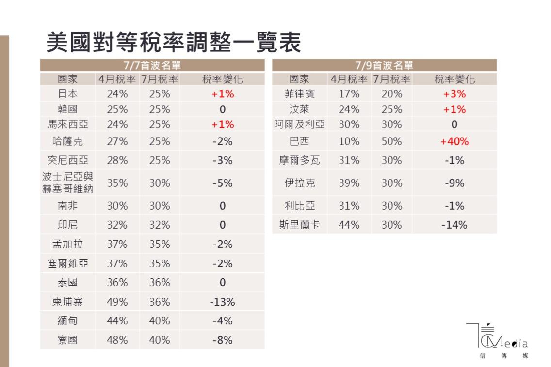 這波關稅攻勢形成明確趨勢:凡未與美國達成貿易協議的國家,都將被視為「對等報復」對象,稅率視雙邊逆差與轉運風險調整,全面提升美方出口談判籌碼。