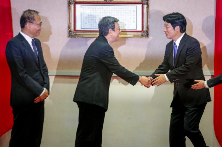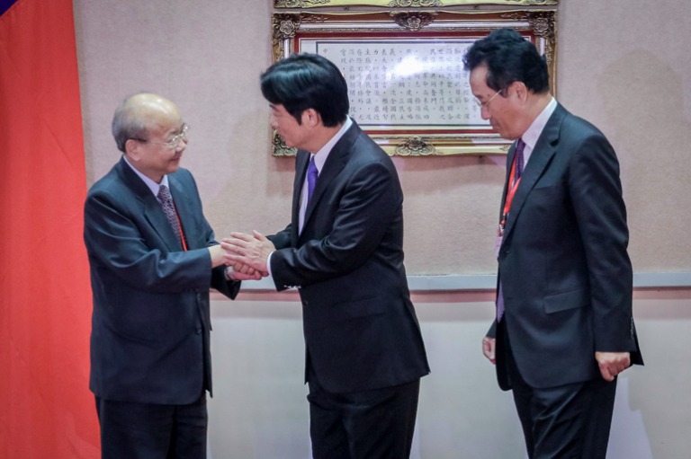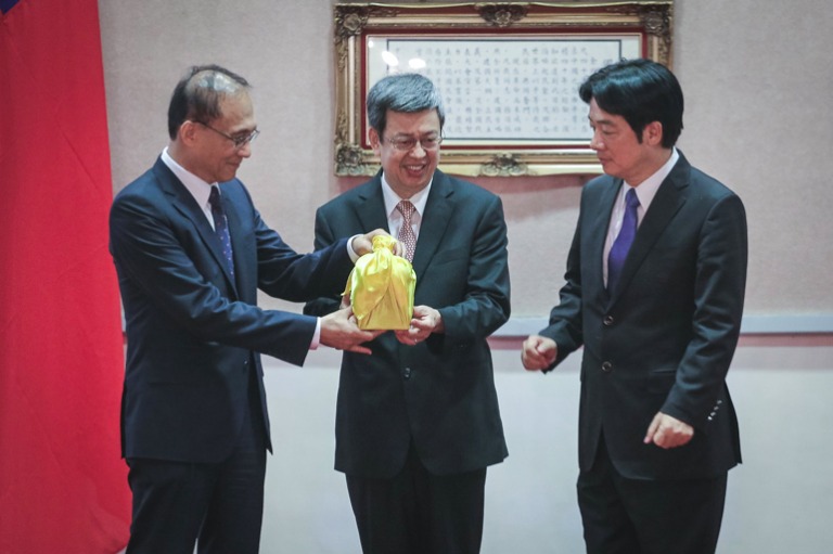 副總統陳建仁與原任行政院長林全及新任行政院長賴清德握手,並擔任監交人,移交印信。