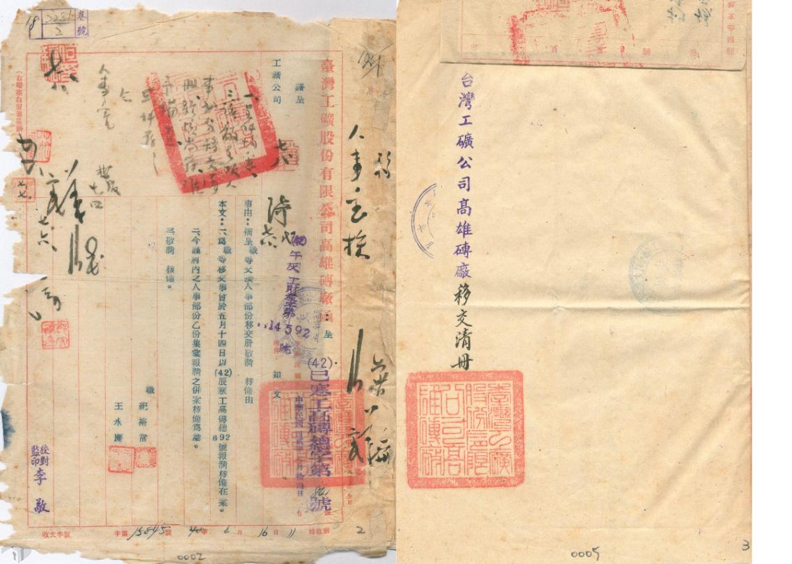 至太平洋戰爭後期,美國調派飛機轟炸臺灣,高雄許多工廠與房舍遭到砲火襲擊,磚窯廠高聳煙囪清晰可見,也成為攻擊目標,當廠區與周邊道路遭到炸毀,交通全面癱瘓,紅磚生產線被迫停頓。二戰後,臺灣百廢待舉,社會急待重整,磚窯廠先經臺灣工礦股份有限公司陶業分公司接收(圖5),再由臺灣工礦公司高雄磚廠接管(圖6),大量生產紅磚,供應社會需求。