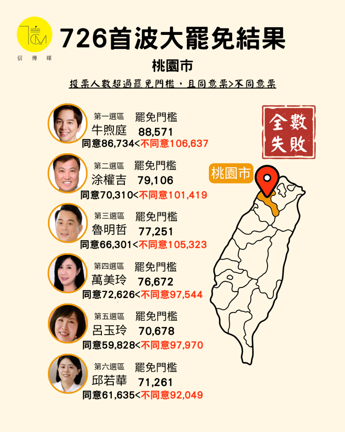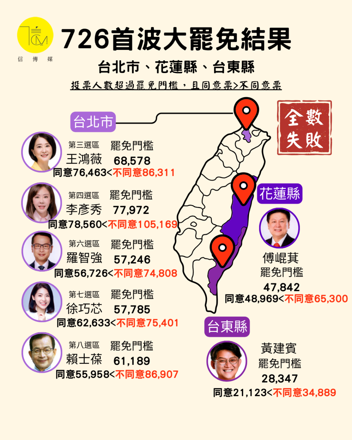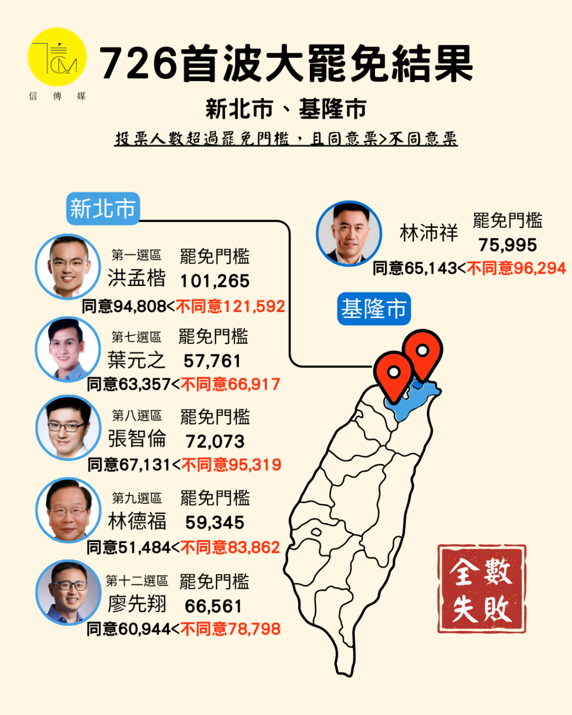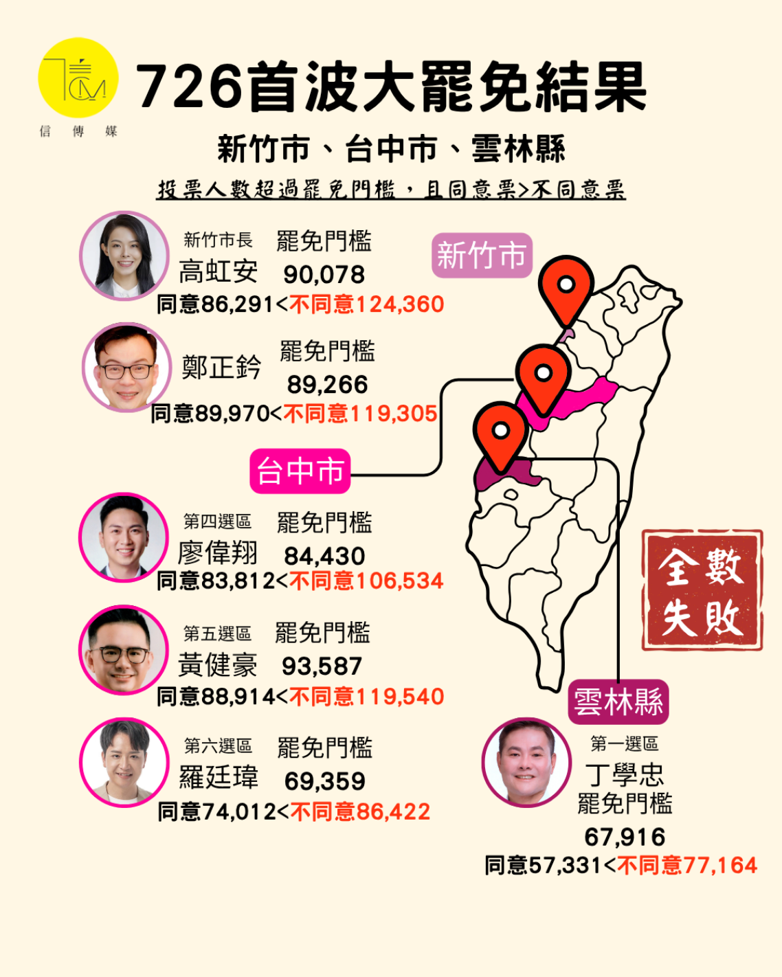 823還有第二波罷免案,還有新北市第十一選區羅明才、新竹縣第二選區林思銘、台中市第二選區顏寬恒、第三選區楊瓊瓔、第八選區江啟臣、南投縣第一選區馬文君、第二選區游顥等7人。