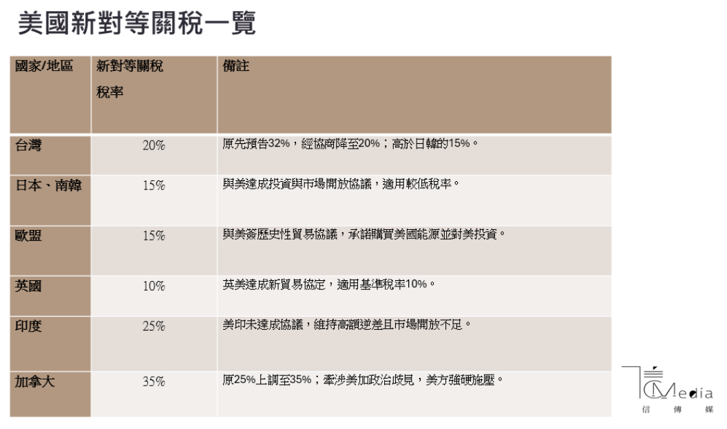 對照日本與南韓日前所達成的15%對等關稅協議,台灣20%的結果明顯偏高,而談判內容則更加缺乏透明。日韓兩國政府在協議達成後,皆迅速公布適用產業範圍與配套因應措施,讓企業能及早部署;反觀賴政府,至今僅以「戰略合作」、「對等原則」等模糊字眼說明,並未具體交代任何換取減稅的對價條件。即使總統親上火線召開記者會,仍無法釐清政府究竟承諾了什麼,讓產業界陷入資訊真空、無所適從。