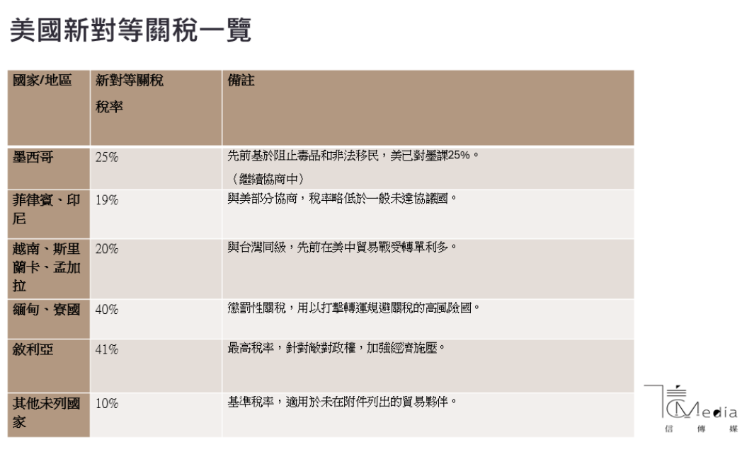 國民黨智庫指出,20%關稅並非終局,僅是暫時數字。但即便如此,對出口為主體的產業而言,市場信心已出現動搖。不僅如此,企業目前面臨的壓力還包括匯率波動的雙重打擊。2024年以來,新台幣對美元升值逾10%,成為亞洲區域升幅最大貨幣之一,使出口導向企業在報價與利潤空間上受到巨大壓縮。