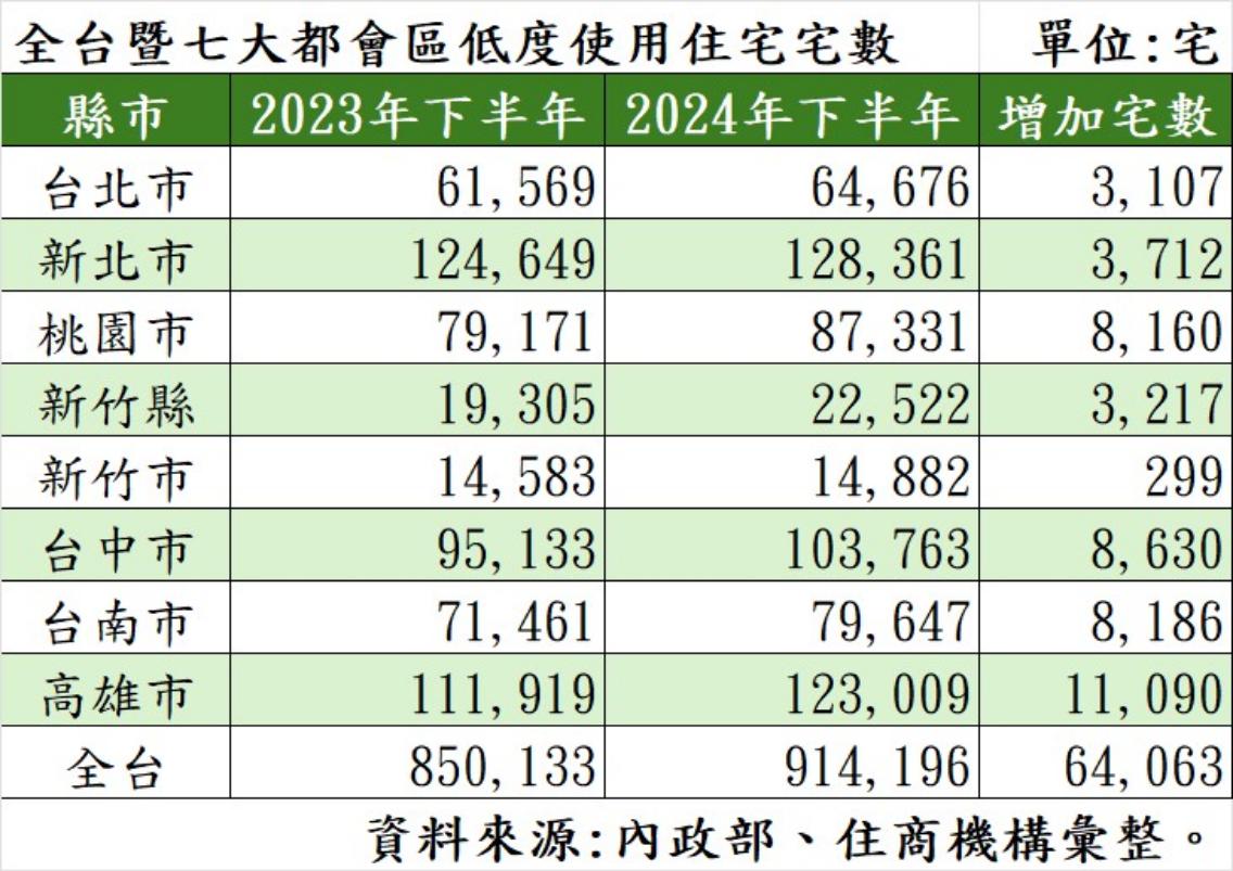 另據統計,高雄市2024年下半年低度使用住宅達12.3萬宅,相較去年同期一年增加1.1萬宅,為七大都會區中增加數量最多者。賴志昶觀察,高雄增加較多低度使用住宅的行政區,以鳳山區為首,該區為高雄人口最多行政區,在地換屋、首購需求濃厚,吸引建商進駐,但區域房價亦有所拉提,加上部分大型建設利多並未完全體現,適逢去年下半年全台買氣漸緩,令剛需客群出手較為謹慎。